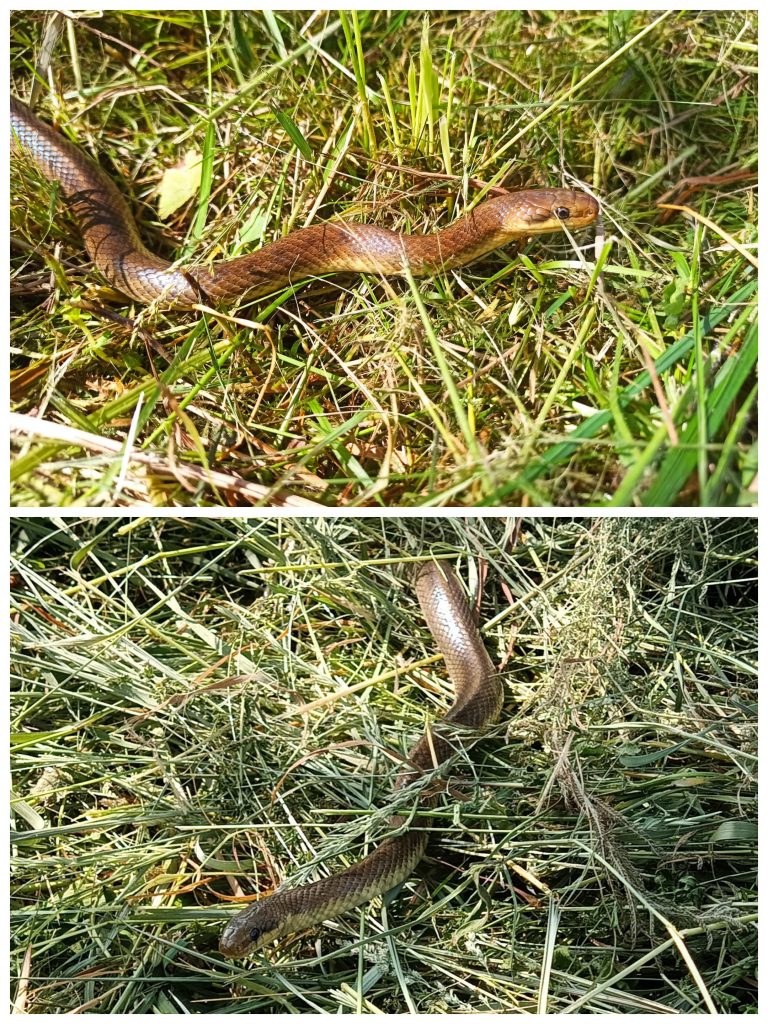 Mit großer Wahrscheinlichkeit war es eine Äskulapnatter – eine Würgeschlange und für Menschen völlig ungefährlich. Also keine Panik, Leute 😉