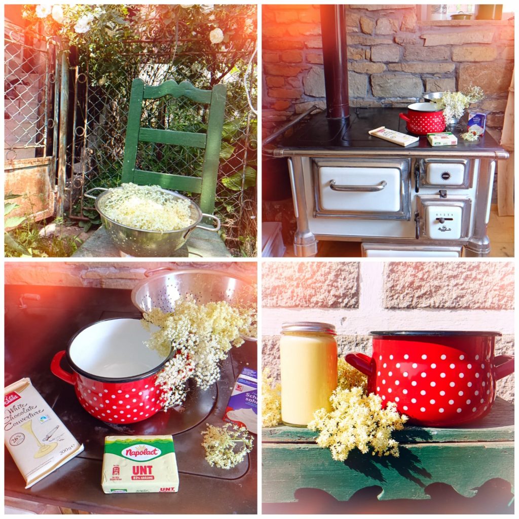 Und tadaaa – heraus kam ein himmlischer Brotaufstrich mit Holunderblüten und weißer Schokolade.