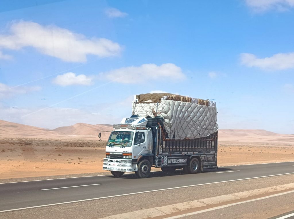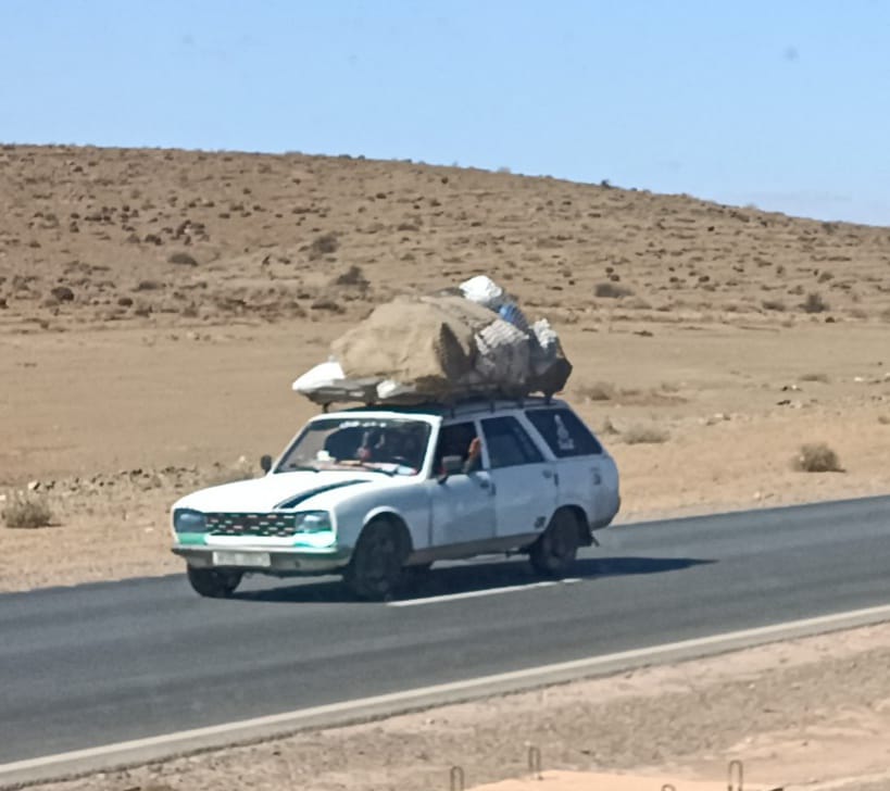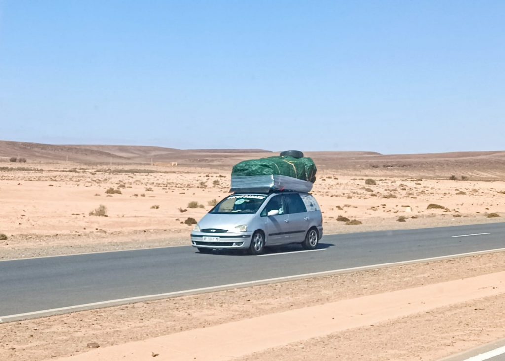 Nun stand uns die eintönige Rückfahrt durch die Westsahara bevor – dieselbe Strecke, die wir bereits in Richtung Mauretanien gefahren waren. Stundenlange Fahrten durch karge Landschaften, immer wieder Polizei-Kontrollen und an Stellplätzen immer wieder Militär, das unsere Pässe fotografierte.