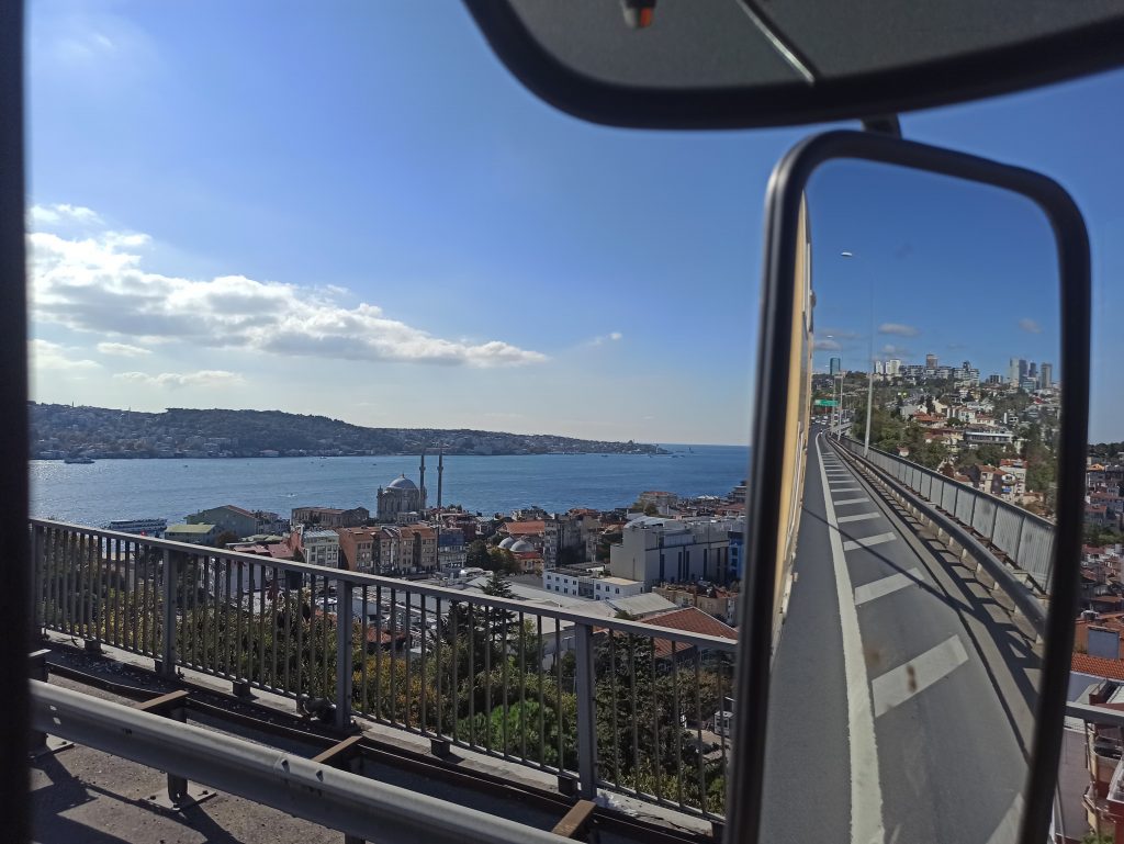 Heute Morgen ging es dann quer durch Istanbul. Rico erfüllte sich seinen Wunsch und wir fuhren über eine der beiden Brücken über den Bosporus. Der Verkehr war, wie auch schon Tags zuvor, atemberaubend. Der Moment, als wir über die Brücke fuhren war großartig. Überall sahen wir Moscheen und hatten einen guten Blick auf die gesamte Stadt. Hier und da wehten riiiiesige Türkische Flaggen, deren rot im Sonnenlicht glänzte.