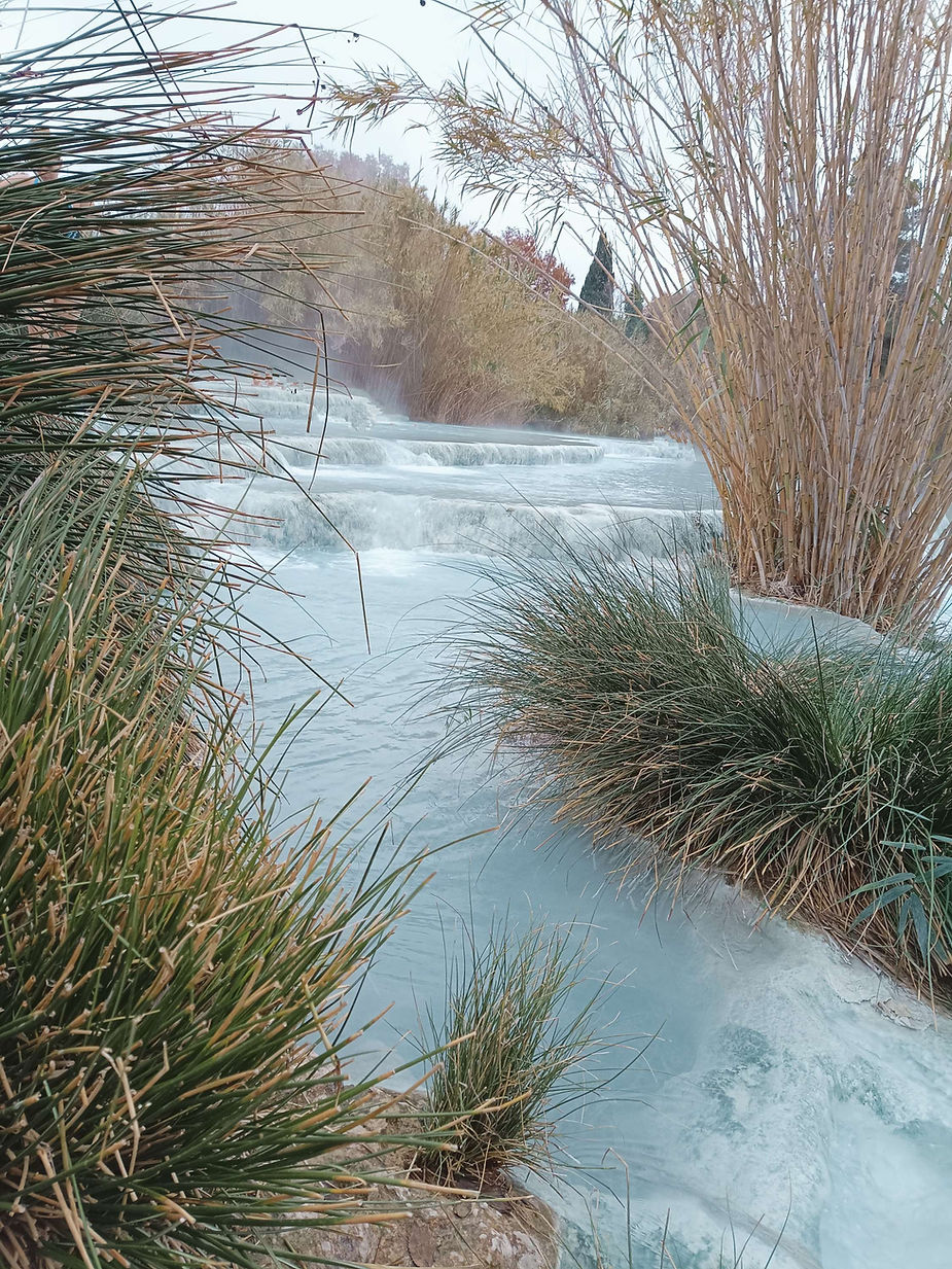 Und so ging es am nächsten Tag nach Saturnia. In dem kleinen Ort gibt es warme Quellen. Dort „sprudelt“ seit mehr als 3.000 Jahren schwefelhaltiges Wasser aus der Erde. Die natürlich „gewachsenen“ Terrassen mit dem blauen Wasser sehen einfach malerisch aus.