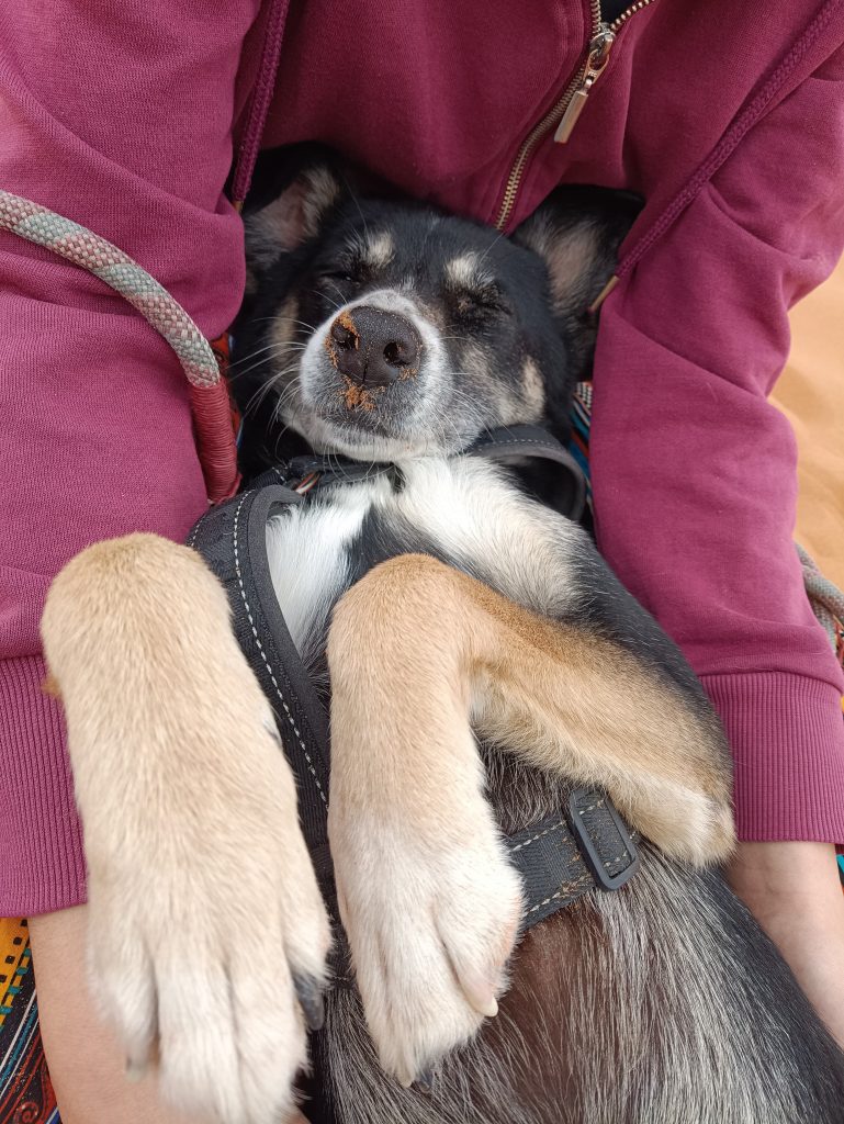 Tags darauf war es bewölkt und somit optimales Wanderwetter. Wir wollten die Düne erklimmen. Es war wahnsinnig anstrengend durch den losen Sand zu stapfen. Wir kämpften uns weit hinauf. Doch das letzte Stück erklommen Rico und Lucy alleine. Orle war kaputt (und ich nahm das zu gern als Begründung auch eine Pause einzulegen). Ich beobachtete meine zwei Lieben, wie sie aufgrund des steilen Anstiegs auf allen vieren den Gipfel stürmten 🤪
