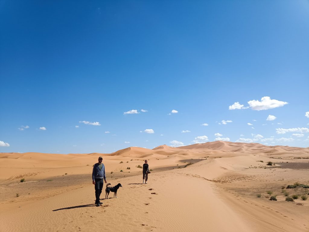 Noch eine kleine Geschichte am Rande: Durchstöbert man die Homepage des marokkanischen Zolls, stößt man irgendwo im Verborgenen auf Bestimmungen für Einreisen mit Hund. Dort steht, dass Hunde zuvor einem Gesundheitscheck mit Zertifikat bei einem Tierarzt unterzogen werden müssen. Diese Papiere müssen dann vom Zoll mit einem Stempel bestätigt werden (was natürlich auch nochmal Geld kostet). Und das alles darf nicht älter als 24 Stunden vor Reiseantritt sein. Wir haben die Rennerei und den finanziellen Aufwand bei anderen Reisenden gesehen (der bei über 250€ lag) – und uns entschieden, das weder unserem Hund noch unserem Geldbeutel anzutun. Erfahrungsgemäß interessiert sich kein Mensch bei Einreisen für den Hund. Und so auch diesmal. Keiner fragte nach diesen Papieren.