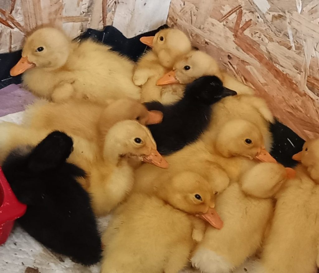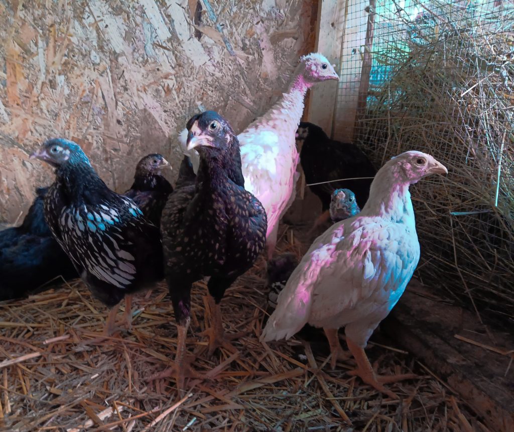 Ein paar Tage später war die Kinderstube fertig. Die Truppe zog um. Erst verhalten, dann neugierig – vor allem die Puten stürmten mutig voran. Bald lagen alle gemeinsam im Stroh. Vor wenigen Tagen dann aber die Erkenntnis: